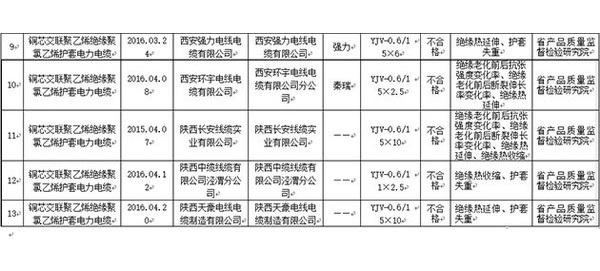 抽查中發(fā)明的5批次不合適尺度請求的產(chǎn)物,分歧格項目觸及電力電纜產(chǎn)物的絕緣老化前后抗張強度轉(zhuǎn)變率、絕緣老化前后斷裂伸長率轉(zhuǎn)變率、絕緣熱延長、絕緣熱縮短、護套失重這些項目。