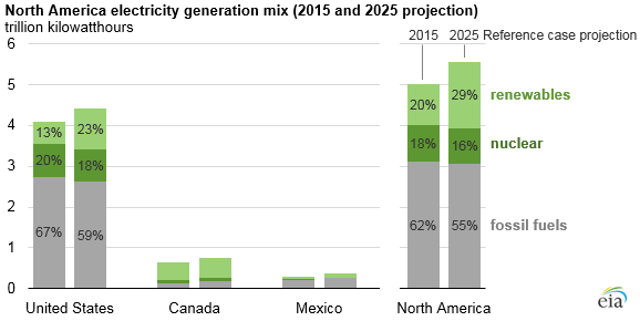 2025年北美可再生動力與核電比例將增至45%