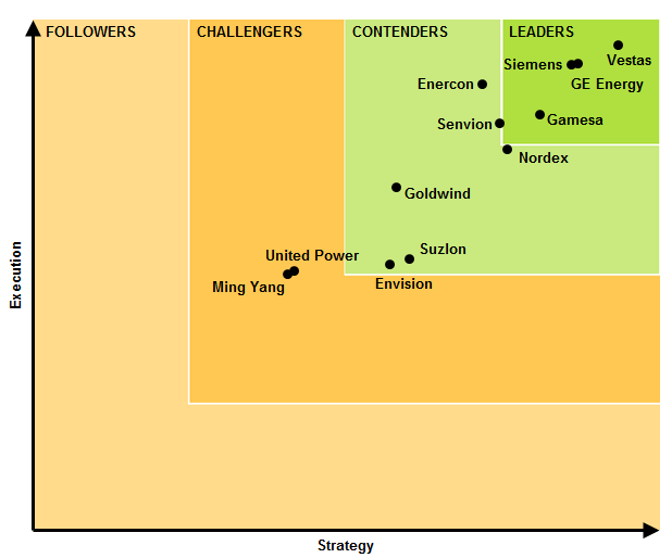 另外,通用電氣GE Energy、西門子、歌美颯、德國Enercon、Senvion、Nordex、中國金風(fēng)科技、印度蘇司蘭、中國前景動力入圍環(huán)球風(fēng)機(jī)OEM十強(qiáng)。