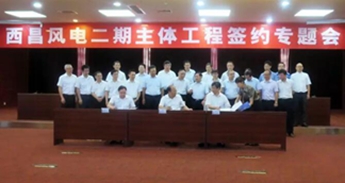 西方風電與西昌颶源風電開辟無限公司、成都勘察設想研討院無限公司于8月26日下康明斯發電機晝簽訂了黃聯關項目205MW風機電組供貨條約。