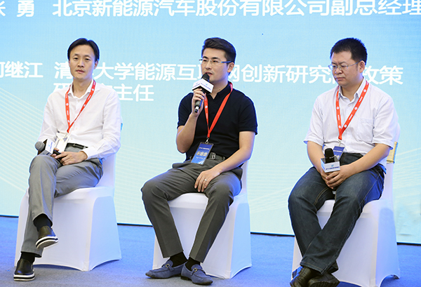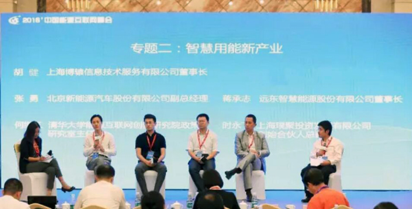 在“聰明用能新財產”論壇,蔣承志與上海博轅信息技能辦事無限公司董事長胡健、北京新動力汽車股分無限公司副總司理張勇、清華大學動力互聯網立異研討院政策研討室主任何繼江、上海璞聚投資成長無限公司總裁時永飛等睜開對話交換。